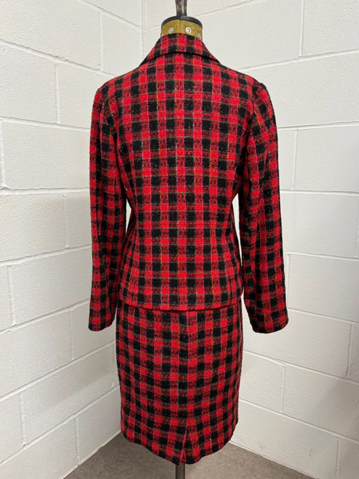 Vintage House of Fraser Red Plaid Skirt Suit - 90s Tweed Set - Size 12